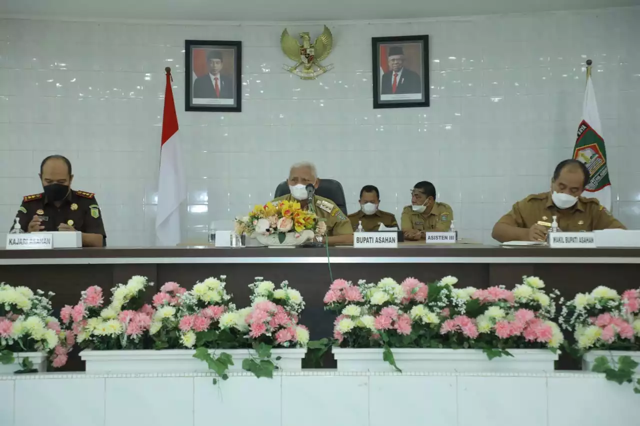 “Rapat ini bertujuan juga sebagai bentuk adanya upaya sinergitas dan memaksimalkan fungsi koordinasi antar Forkopimda, Instansi Vertikal dengan Pemerintah Kabupaten Asahan dalam menyelesaikan pokok permasalahan yang ada di Kabupaten Asahan sehingga dapat terselesaikan dengan baik,” ucap Bupati Asahan.