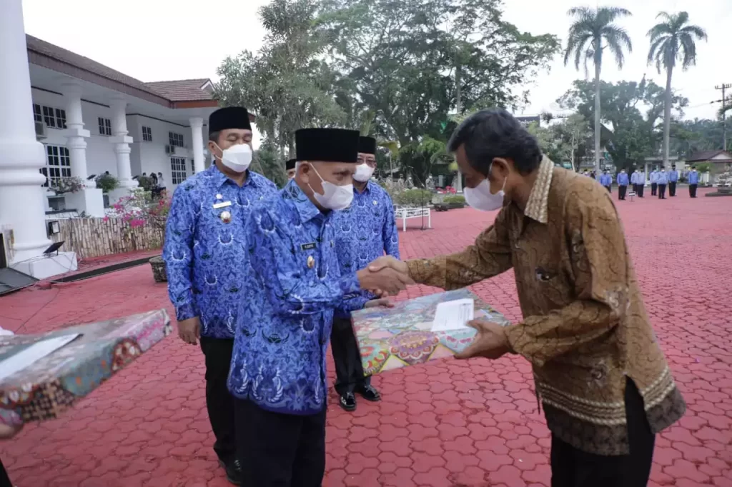 Pada pelaksanaan Upacara HKN kali ini Bupati juga menyerahkan bantuan penali kasih kepada ASN yang memasuki masa pensiun sebanyak 10 orang.