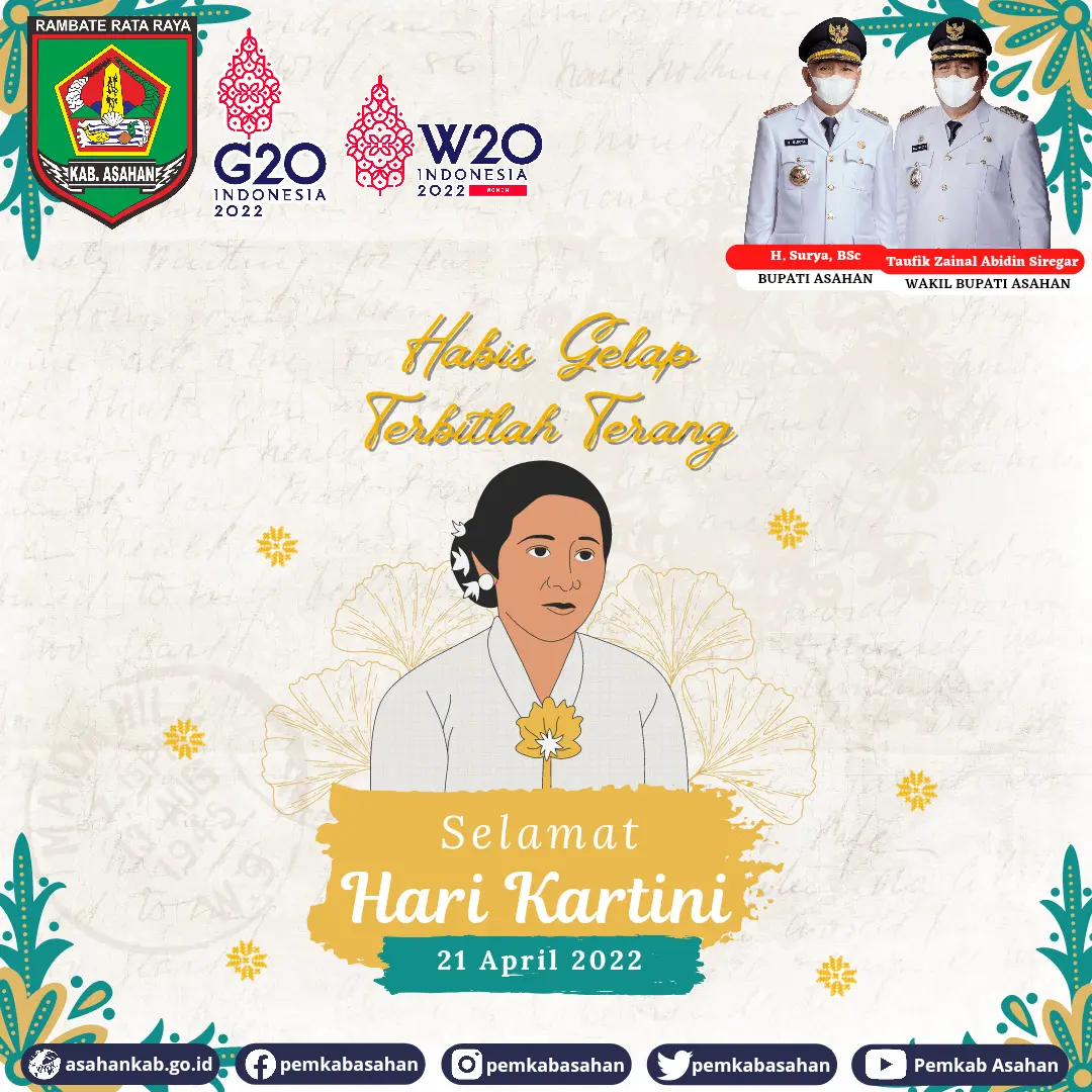 Pemerintah Kabupaten Asahan mengucapkan Selamat Hari Kartini 2022 untuk para wanita Indonesia. Semoga para Kartini senantiasa berprestasi selalu dan penuh semangat.