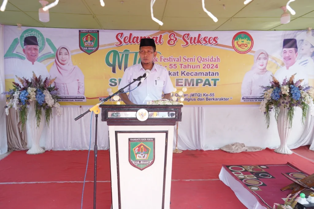 Bupati Asahan diwakili Kepala P2KBP3A Kabupaten Asahan Edi Sukmana membuka Musabaqah Tilawatil Qur’an Nasional (MTQN) Tingkat Kecamatan Simpang Empat, Rabu (28/02/2024). Pelaksanaan MTQN tersebut dilaksanakan di Halaman Kantor Kecamatan Simpang Empat dan dihadiri Sekretaris Dinas Kominfo Kabupaten Asahan, Camat Simpang Empat beserta jajaran, Forkopimcam Simpang Empat, Tokoh Agama, Tokoh Masyarakat dan tamu undangan lainnya.