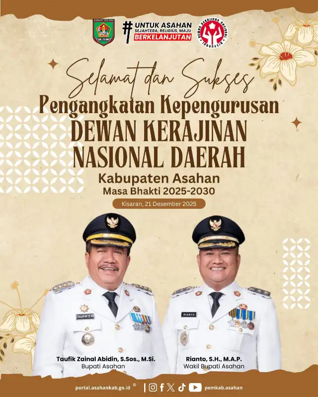 Pemerintah Kabupaten Asahan, di bawah kepemimpinan Bupati Asahan Taufik Zainal Abidin, S.Sos., M.Si., bersama Wakil Bupati Asahan Rianto, S.H., M.AP., menyampaikan ucapan selamat dan sukses atas Pengangkatan Kepengurusan Dewan Kerajinan Nasional Daerah (Dekranasda) Kabupaten Asahan Masa Bhakti 2025–2030, yang dilaksanakan di Kisaran, 21 Desember 2025. Dekranasda diharapkan menjadi motor penggerak pelestarian budaya dan penguatan UMKM … Read more