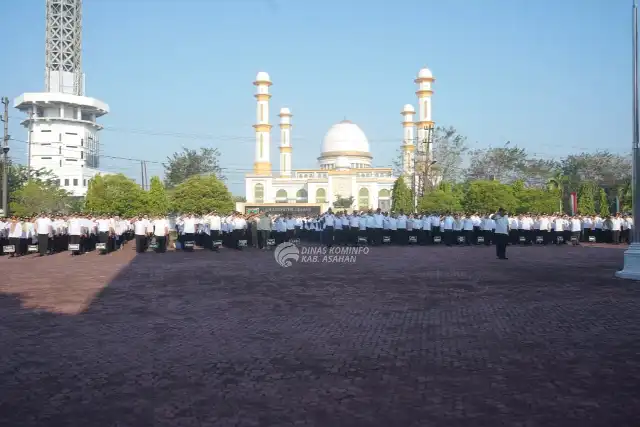 KISARAN (25/03/2026) – Pemerintah Kabupaten Asahan menggelar apel gabungan perdana pasca libur Hari Raya Idul Fitri 1447 H di Halaman Kantor Bupati Asahan. Apel ini diikuti oleh Bupati dan Wakil Bupati Asahan, Sekretaris Daerah, para Asisten, Staf Ahli, pimpinan OPD, serta ASN di lingkungan Pemkab Asahan. Pada hari pertama masuk kerja tersebut, tingkat kehadiran ASN tercatat mencapai 98 persen.