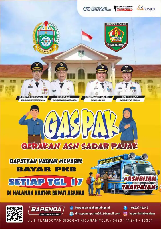Pemerintah Provinsi Sumatera Utara dan Kabupaten Asahan mengajak seluruh Aparatur Sipil Negara (ASN) untuk berpartisipasi aktif dalam program GASPAK (Gerakan ASN Sadar Pajak).