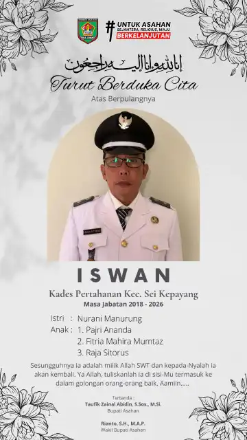 Pemkab Asahan Mengucapkan Turut Berduka Cita Atas Berpulangnya Bapak Iswan Selaku Kades Pertanahan Kec Sei Kepayang Periode 2018 – 2026